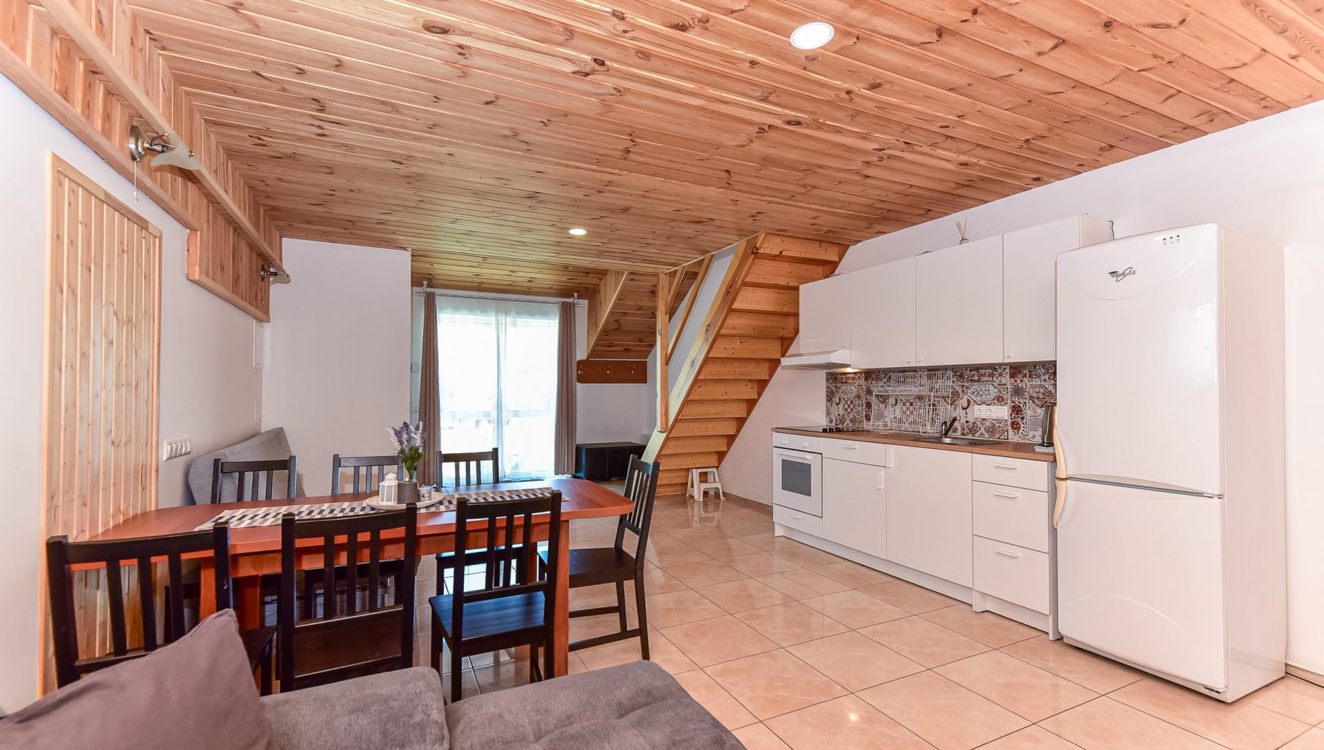 Dviejų aukštų kotedžiukas ant ežero kranto. Pirmame aukšte svetainė su virtuve, tualetas, dušas. Įrengtas grindinis šildymas. Stovi sofa-lova, minkštas kampas, valgomasis stalas. Antrame aukšte viena dvigulė ir viena viengulė lovos. Viso kotedžiuke 6 miegamos vietos. Yra televizorius, internetas. Įrengtas kondicionierius. Įrengta terasa su kubilu ir pirtimi. Iš terasos nusileidimas laiptais iki pat ežero. Lauke pavėsinė, kurioje telpa 6 žmonės. Šalia vaikų žaidimų aikštelė. Įrengtas krantas maudytis bei keturi lieptai. Pakrante ir lieptais naudojasi 7A, 7B, 7C, 7D kotedžiukų gyventojai.
