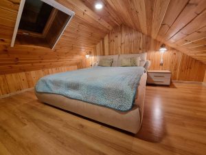 Namelyje yra pagalvės ir antklodės, užvalkalus reikia atsivežti savo. Patalynę galima išsinuomoti (viengulis komplektas – 3EUR, dvigulis komplektas – 5EUR.)